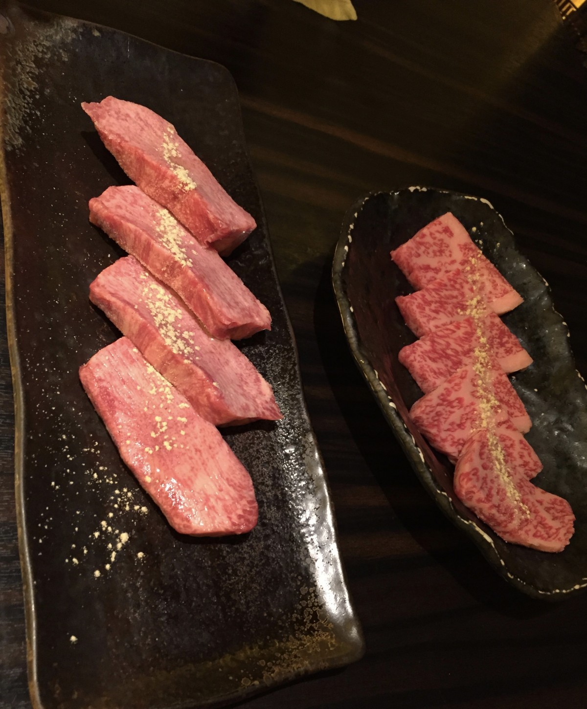 左が牛タン。右はカルビ。