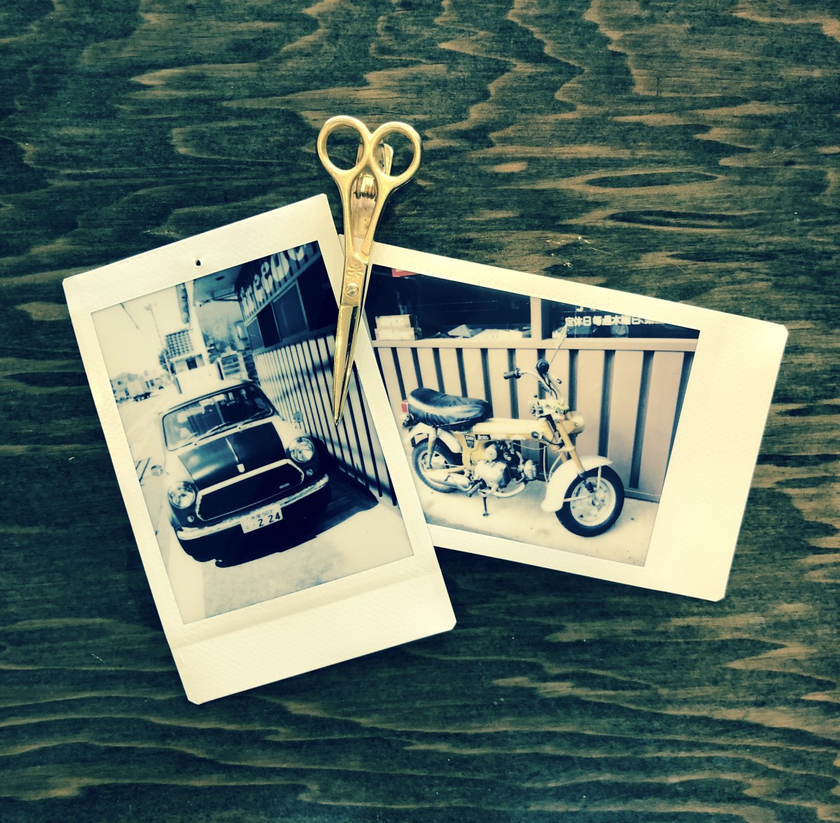 お外のミニーちゃんのボンネットにさ。